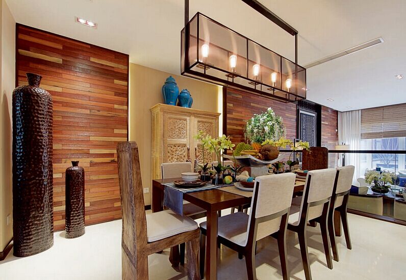 東南亞風(fēng)格的裝飾中,室內(nèi)所有的材料多直接取自自然。由于炎熱、潮濕的氣候帶來豐富的植物資源,木材、藤、竹成為室內(nèi)裝飾******。